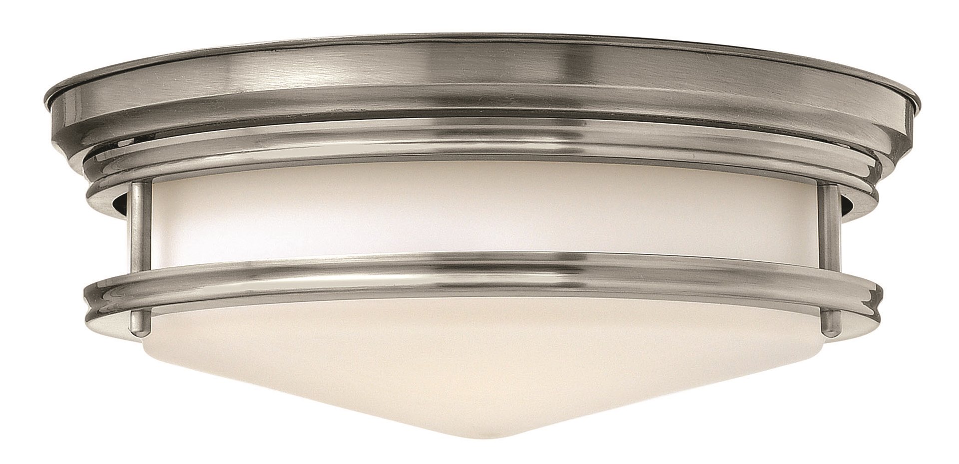 The Hadley is a retro-styled flush mount collection available in four classic finish options: Antique Nickel, Brushed Bronze, Chrome and Oil Rubbed Bronze. The etched opal, one piece glass shade features a slim design that will complement a variety of decors.