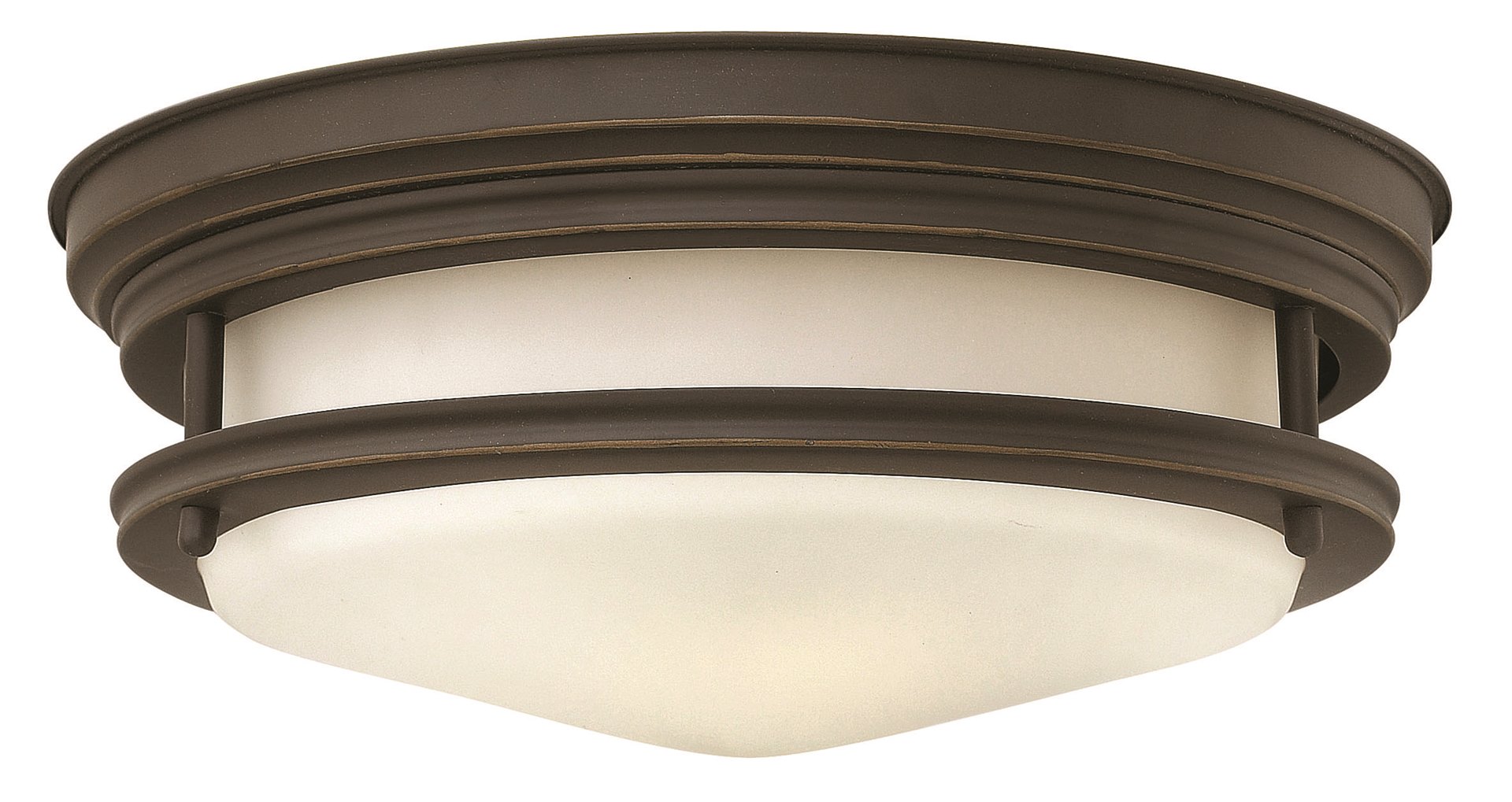 The Hadley is a retro-styled flush mount collection available in four classic finish options: Antique Nickel, Brushed Bronze, Chrome and Oil Rubbed Bronze. The etched opal, one piece glass shade features a slim design that will complement a variety of decors.