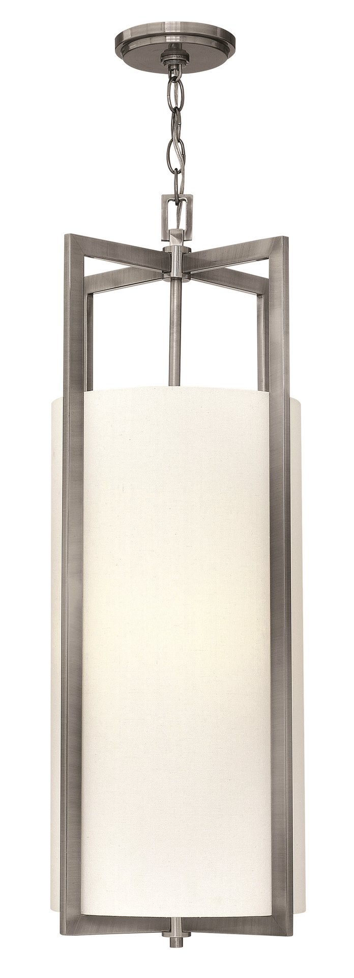 Hampton is a modern transitional design, offering the ultimate in urban sophistication. The minimal rectangular frame, paired with a decorative acrylic etched bottom lens, is softened by a contemporary off-white linen drum shade.
