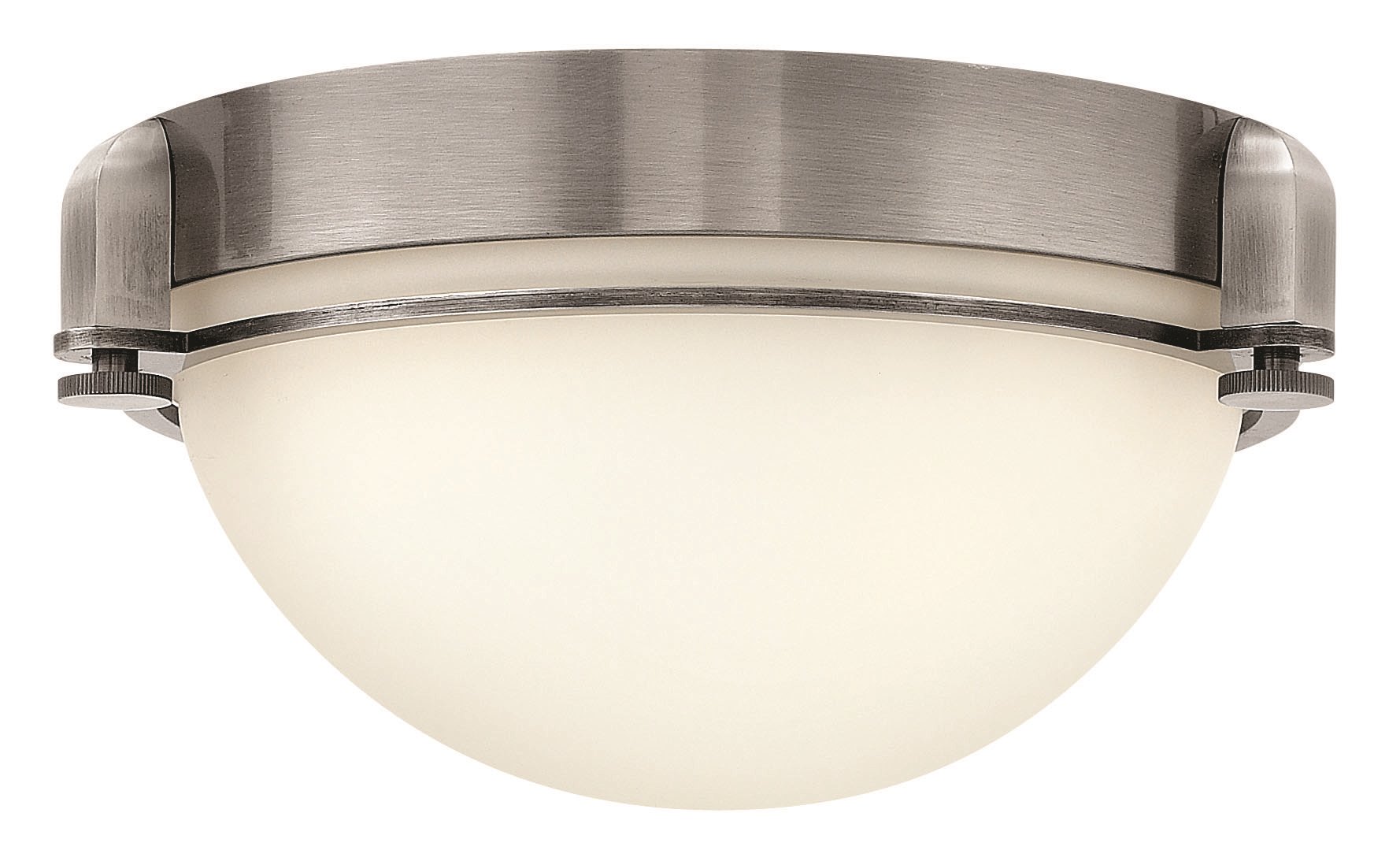 60w Foyer Logan MED Etched Opal Antique Nickel Flush Mount