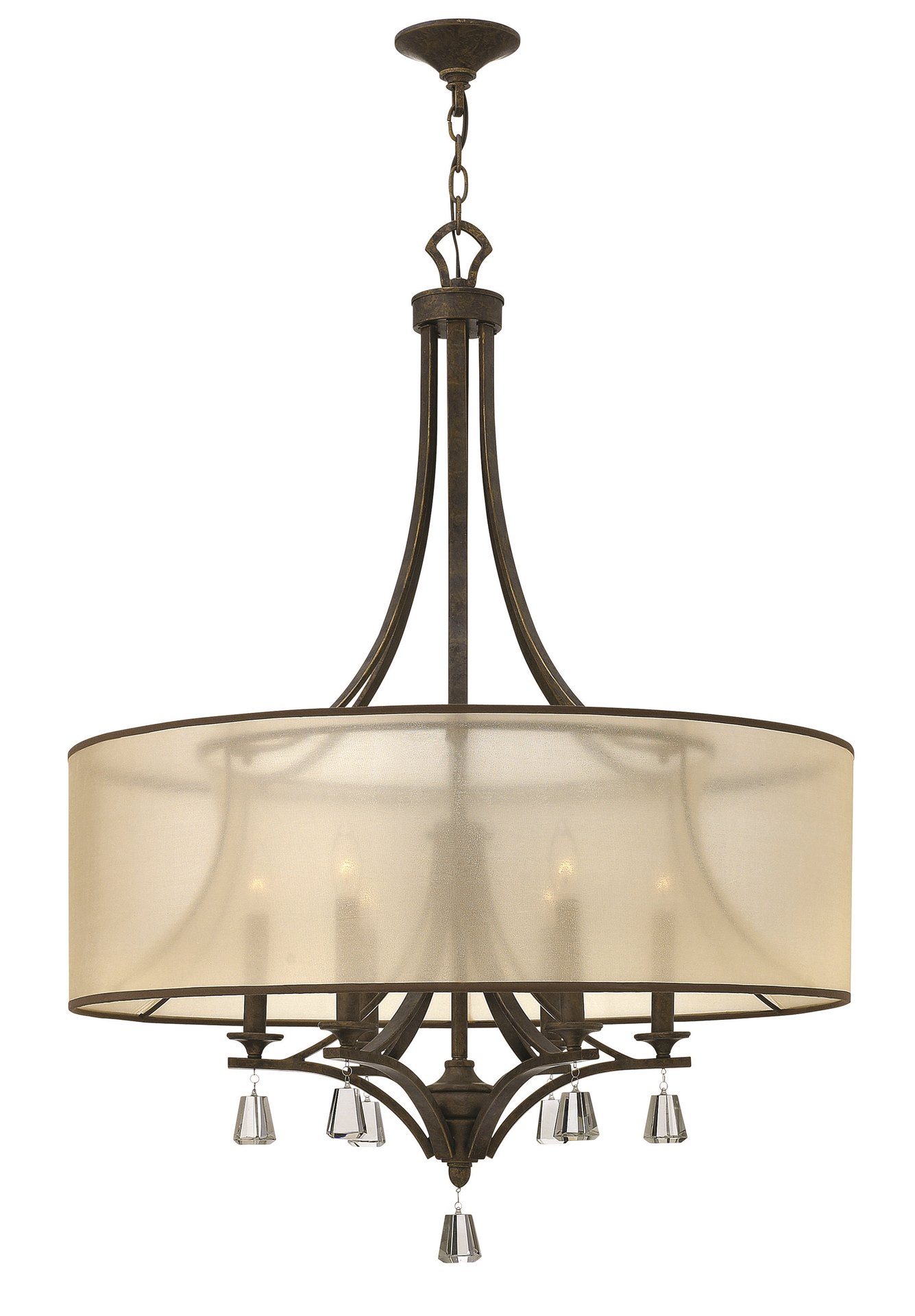 This elegant collection in our Brushed Nickel and French Bronze finish features a sheer translucent double hardback shade and tapered square crystal accents.