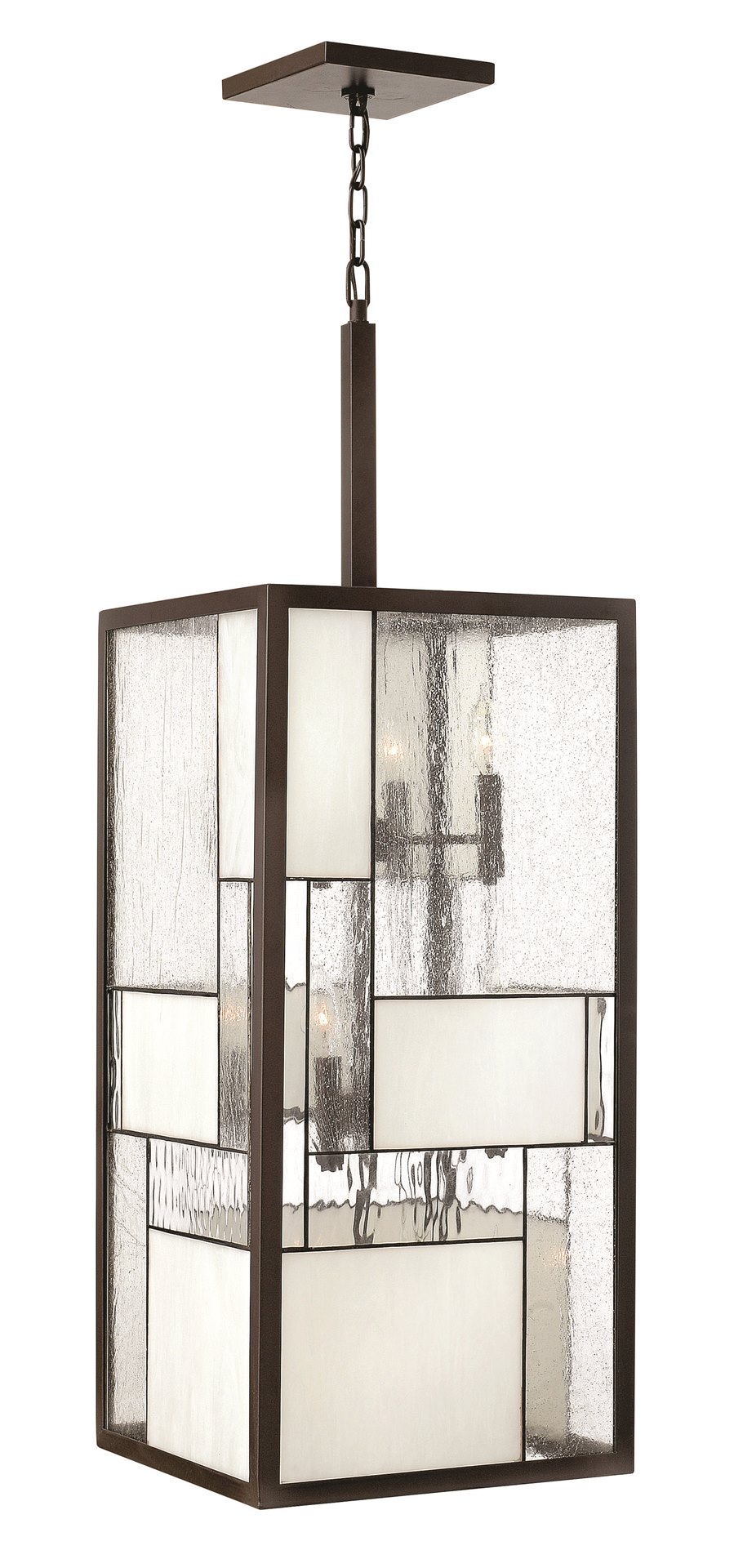 Mondrians unique patterned panels of glass mounted in copper foil adds geometric panache in a Buckeye Bronze finish.