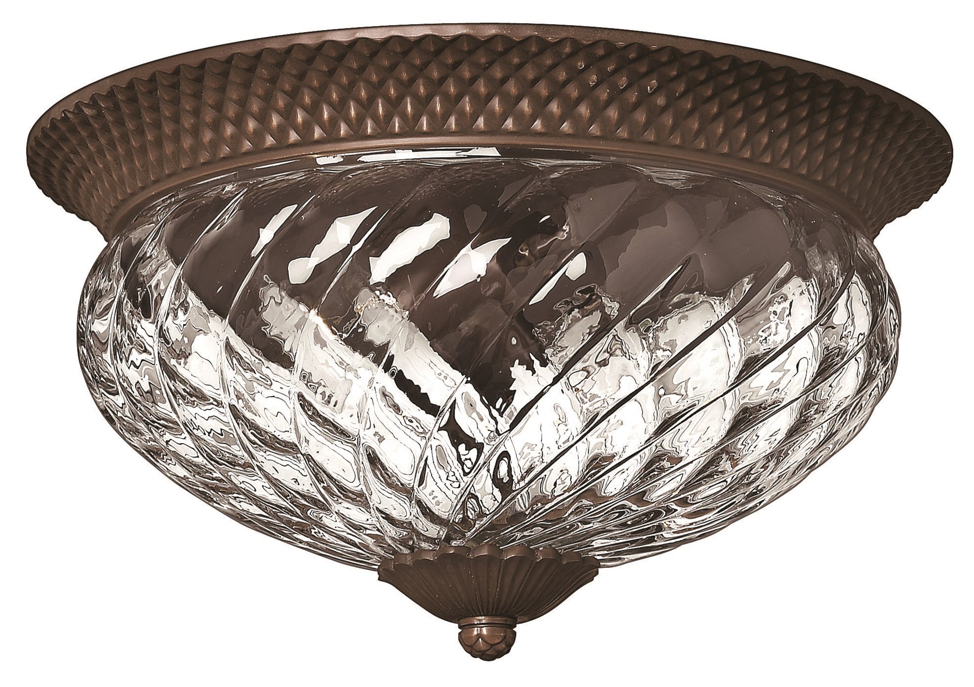 A Hinkley classic the ornate Plantation collection features exceptional pineapple shaped clear optic glass that makes a noble statement. The Burnished Brass Pearl Bronze and Polished Antique Nickel finishes have matching candle sleeves and elaborate decorative cast detailing.