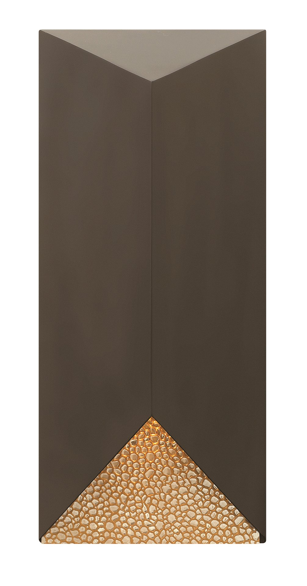 Ventos versatile design in a Bronze solid aluminum construction features a series of crisp triangular forms complemented by a stunning interior reflective plate of hammered copper for modern style with vintage flair.