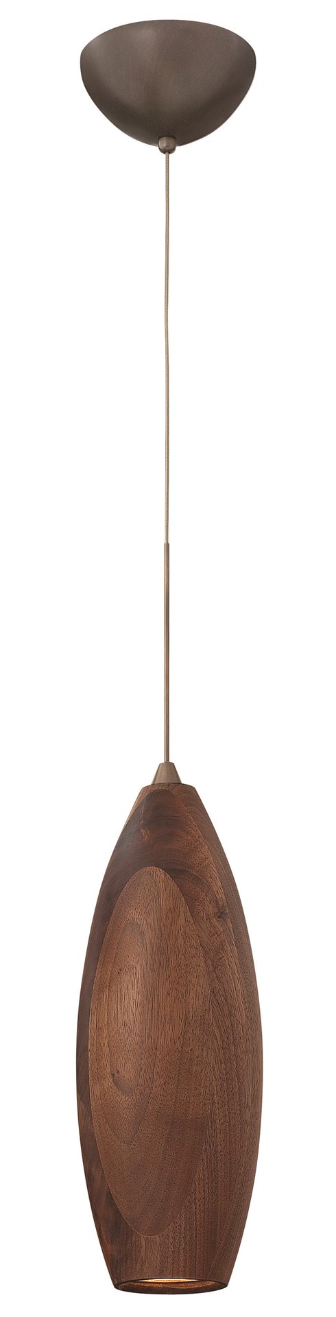 Going green has never been so stylish. The Loft pendant is hand made from select grade solid Walnut and will be individually unique. Chrome, Brushed Nickel, and Bronze finish options for the canopy are available. Each piece is cable hung and includes an energy-efficient LED light source.