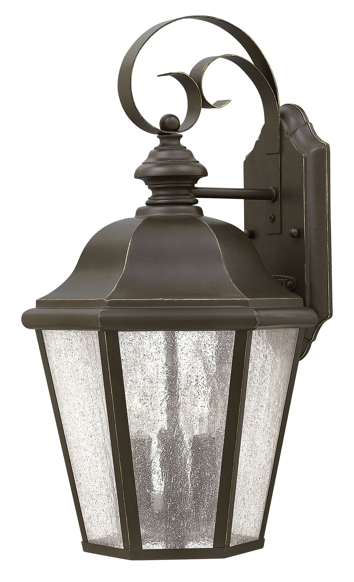Edgewaters classic design features durable cast aluminum and brass construction in a rich Black or Oil Rubbed Bronze finish with clear seedy glass.