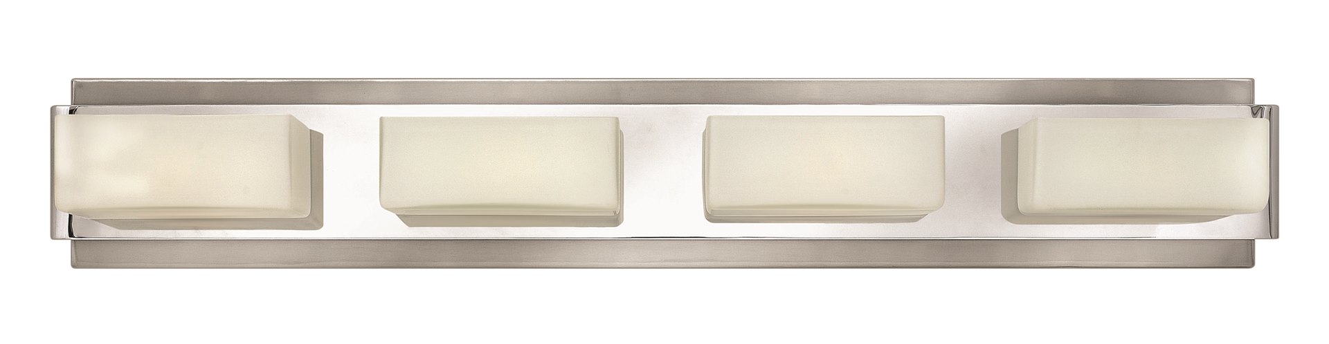 60w Bath Domino G-9 Etched Opal Brushed Nickel Bath Four Light
