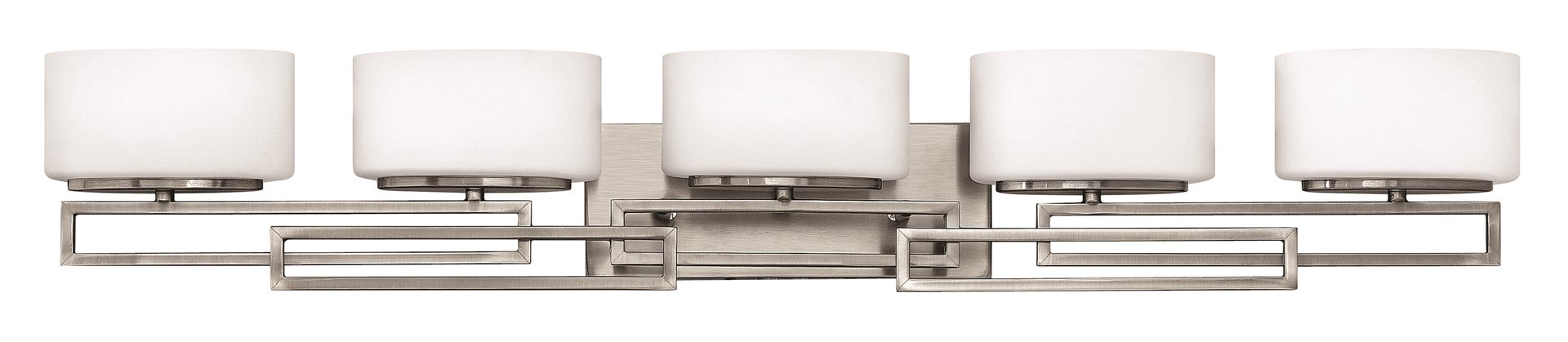 60w Bath Lanza G-9 Etched Opal Antique Nickel Bath Five Light