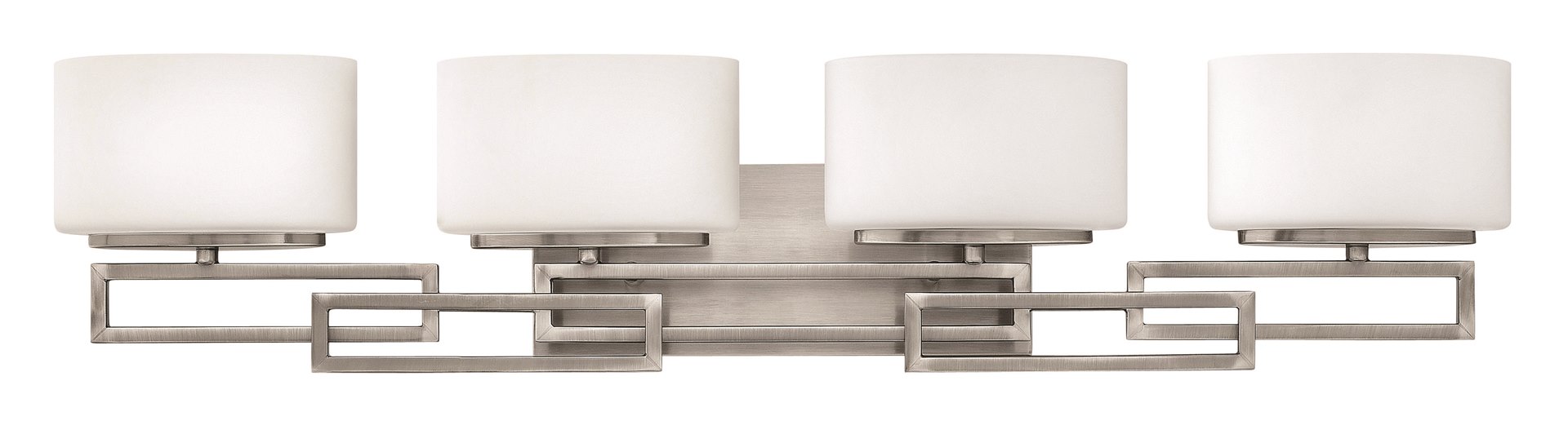 60w Bath Lanza G-9 Etched Opal Antique Nickel Bath Four Light
