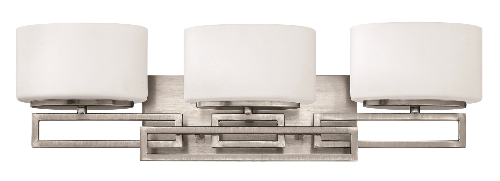 60w Bath Lanza G-9 Etched Opal Antique Nickel Bath Three Light