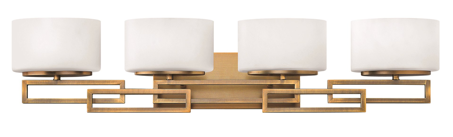 60w Bath Lanza G-9 Etched Opal Brushed Bronze Bath Four Light