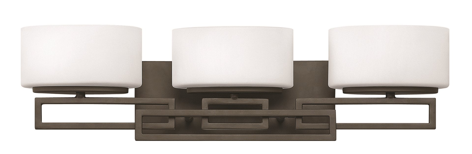 60w Bath Lanza G-9 Etched Opal Buckeye Bronze Bath Three Light