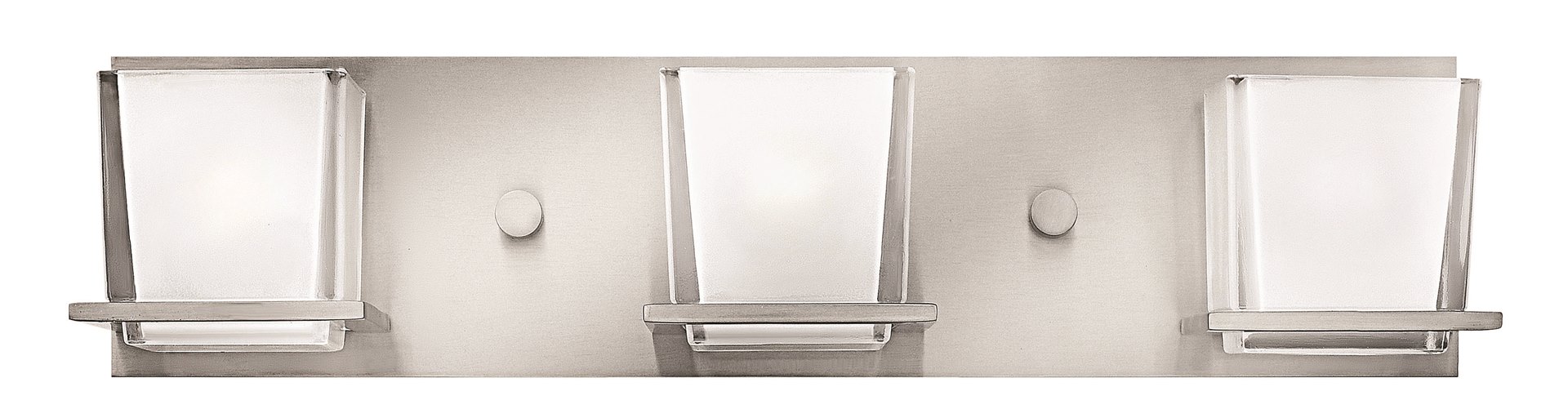 60w Bath Lola G-9 1/4" Thick Clear Inside Etched Brushed Nickel Bath Three Light