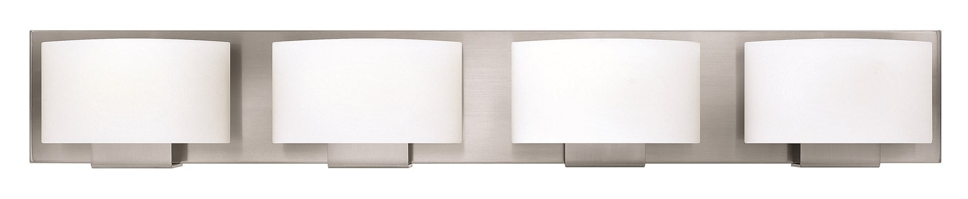 60w Bath Mila G-9 Etched Opal Brushed Nickel Bath Four Light