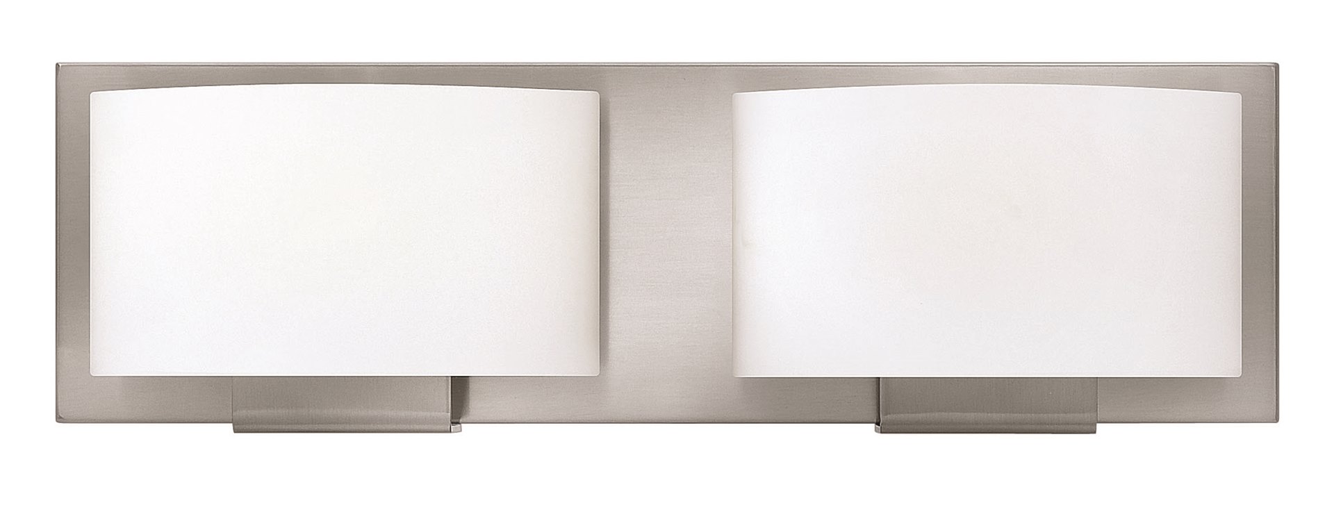 60w Bath Mila G-9 Etched Opal Brushed Nickel Bath Two Light