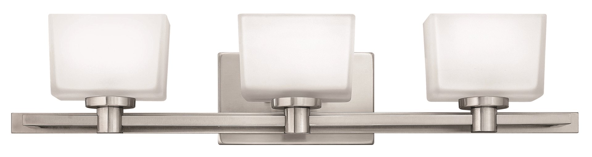 60w Bath Taylor G-9 Etched White Brushed Nickel Bath Three Light