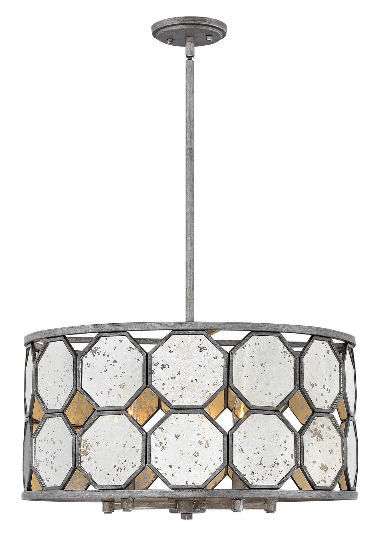 Stunning octagonal panes of antique mirror glass are the striking centerpiece of Lara’s stem hung transitional design. The hand painted Brushed Silver finish radiates with lustrous undertones, adding dimension and vintage elegance.