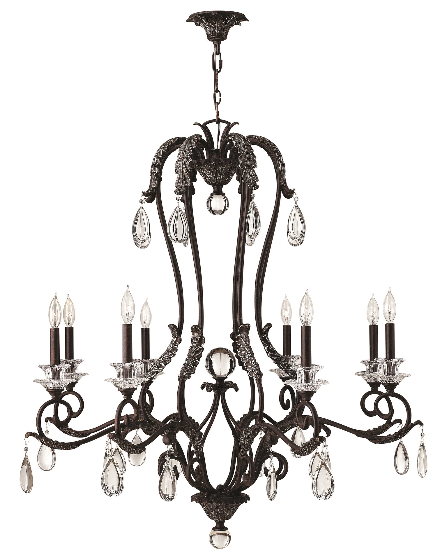 Marcellinas grand style features beautiful silver-highlighted cast leaf detailing crystal bobesches crystal ball finials and a large solid crystal center gazing ball. The Golden Bronze finish and optional damask silk shades add to the collection’s luxurious sophistication.