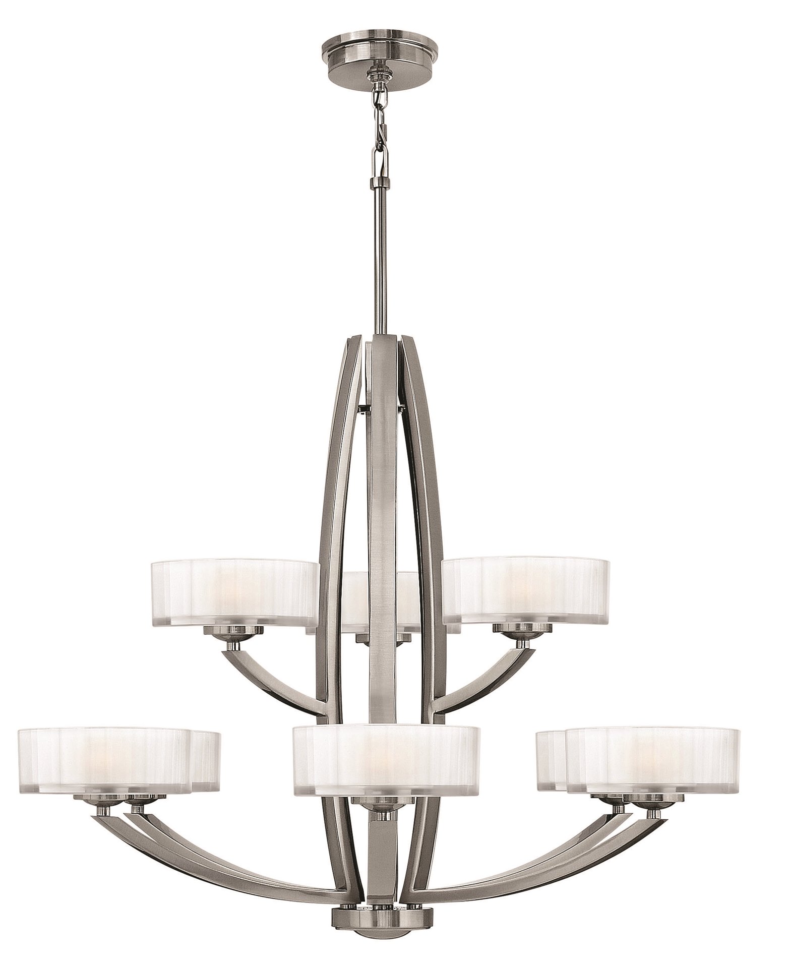 60w Chandelier Meridian G-9 Thick Faceted Clear Inside Etched Brushed Nickel Two Tier Foyer
