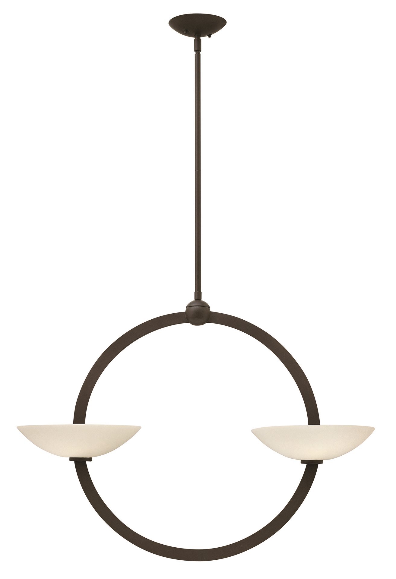 Method�s contemporary stem hung chandelier collection creates a unique balancing effect with low profile etched opal glass appearing to pierce the circular frame of either Brushed Nickel or Vintage Bronze.