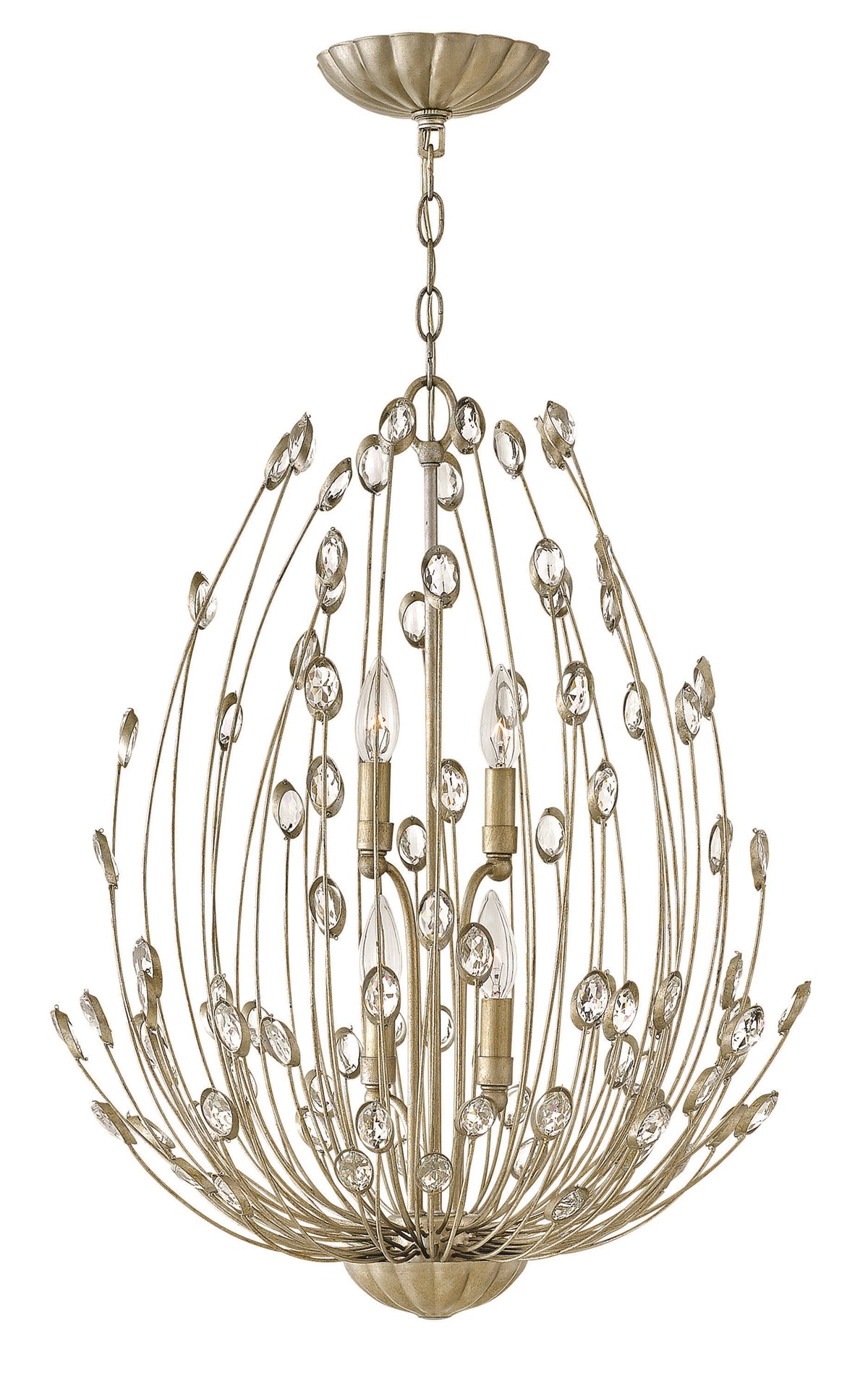 Tulah�s multifaceted asymmetrical design is hand crafted with artisan details. Its beauty unfolds in layers, revealing delicately scalloped canopies, a lustrous Silver Leaf finish, and dazzling faceted clear crystal embellishments adding the perfect amount of sparkle.