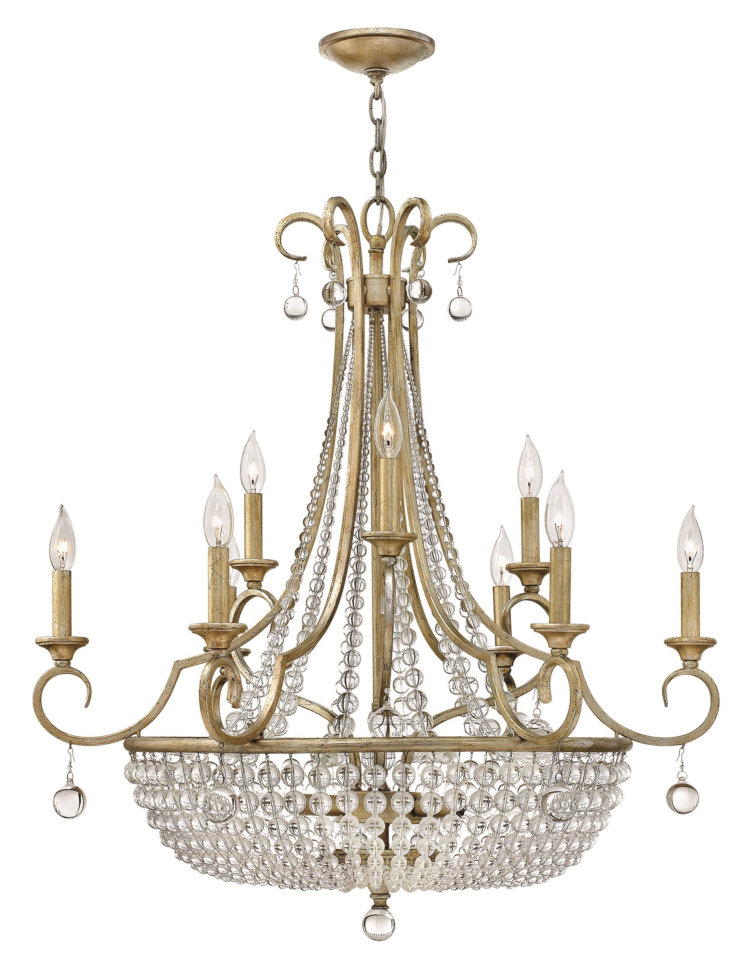 This chic classic crystal design in a luxurious Silver Leaf finish features strands of whimsical crystals in graduating sizes.