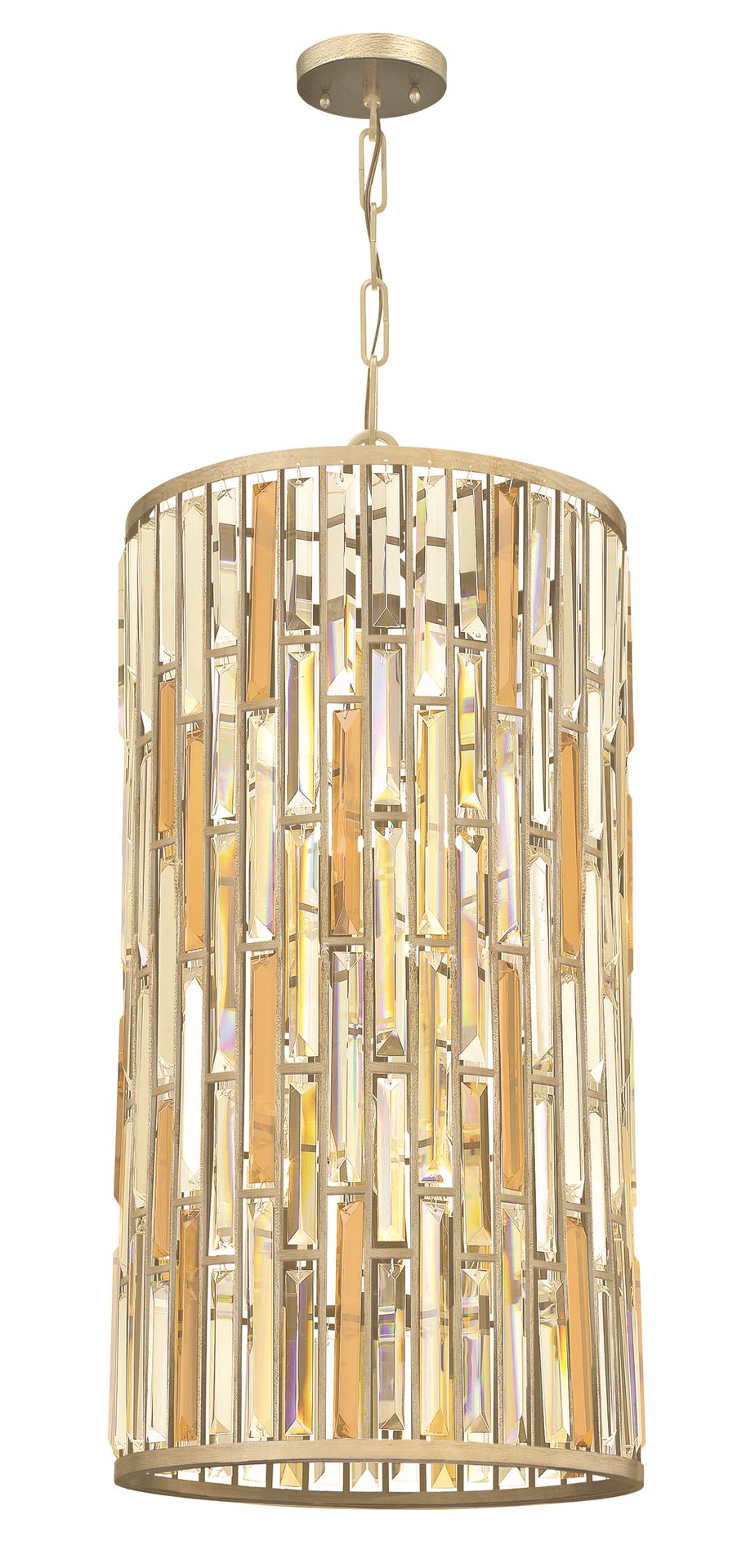 Gemma is a contemporary chandelier collection with stunning rectangular prisms of amber pearl and clear crystal set within a frame of Vintage Bronze or Silver Leaf to create a seamless sparkling, jewelry-like effect.