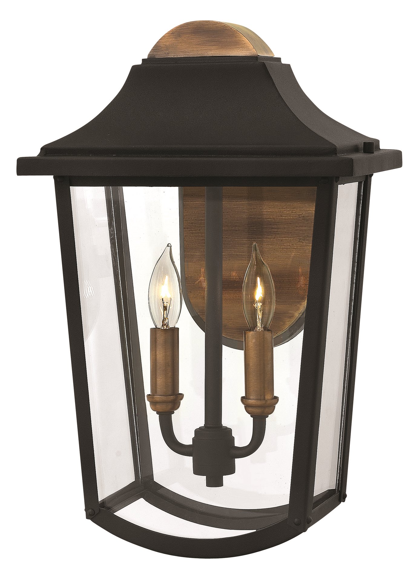 Burton�s classic cast aluminum construction in a robust Black finish is complemented by elegant touches. The distressed copper accents on the back plate, roof and socket cover paired with clear beveled glass complements the traditional styling.
