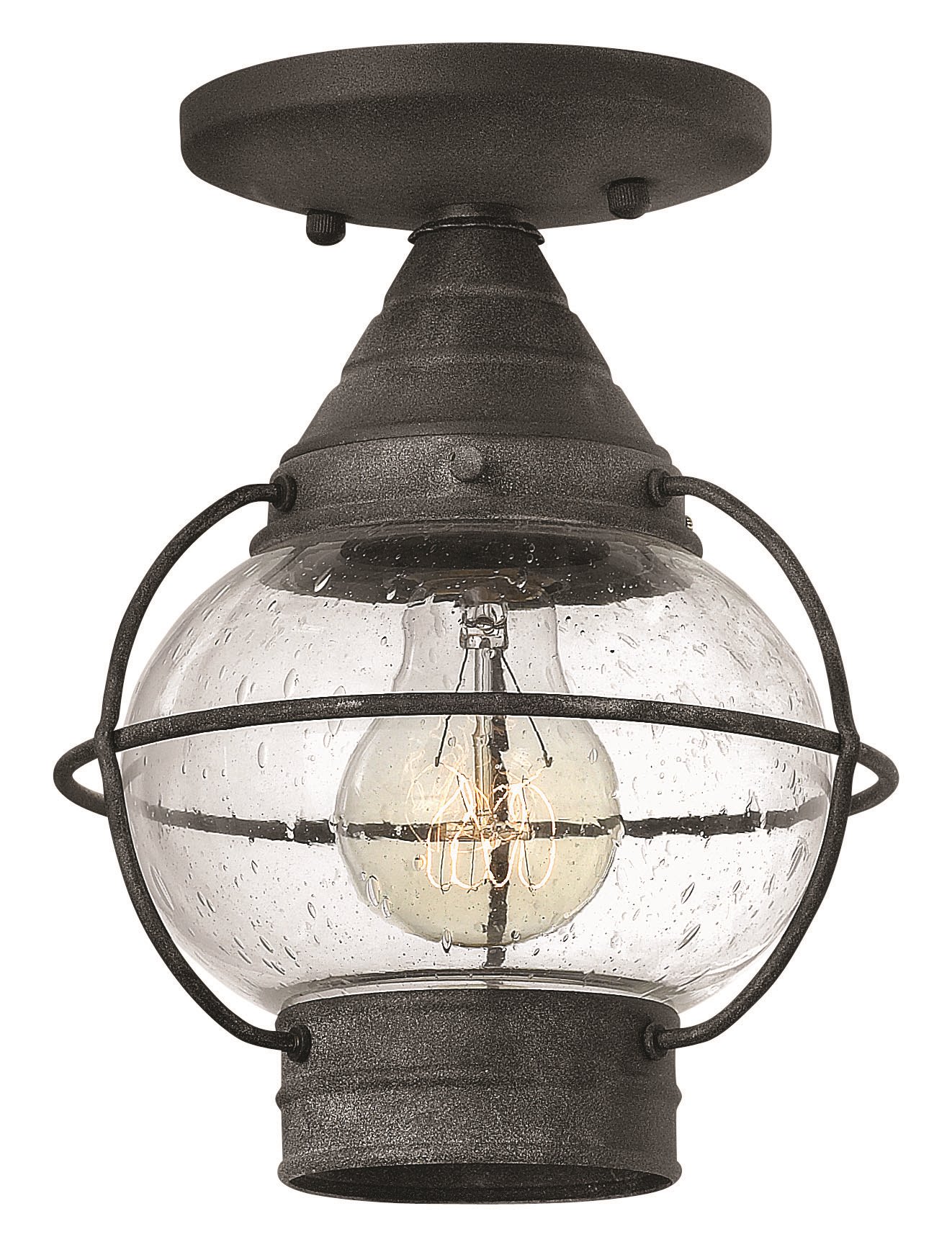 60w Outdoor Cape Cod MED Clear Seedy Aged Zinc Flush Mount