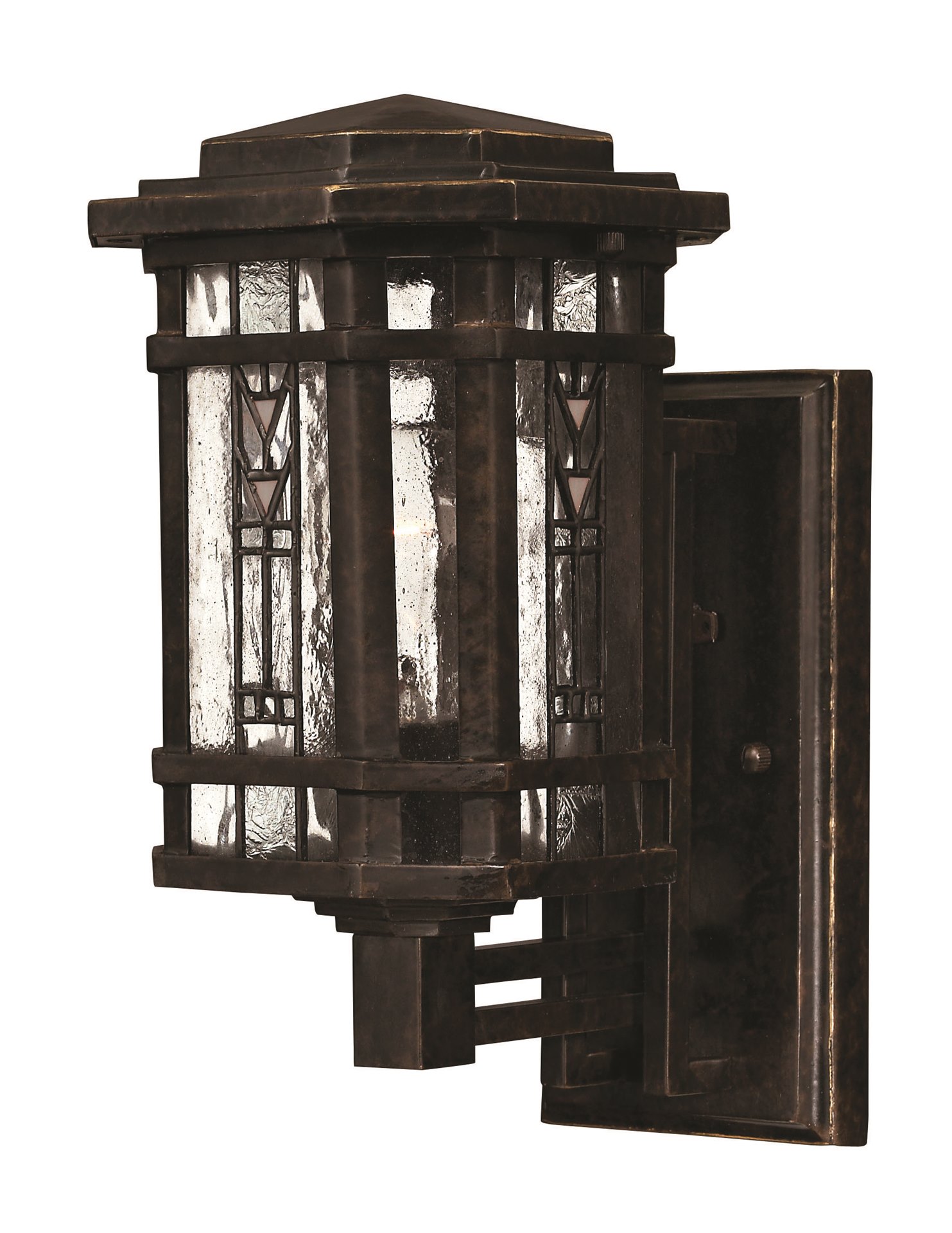 60w Outdoor Tahoe MED Clear Seedy Water Glass with Copper Foil Art Glass Accents Regency Bronze Mini Wall Mount