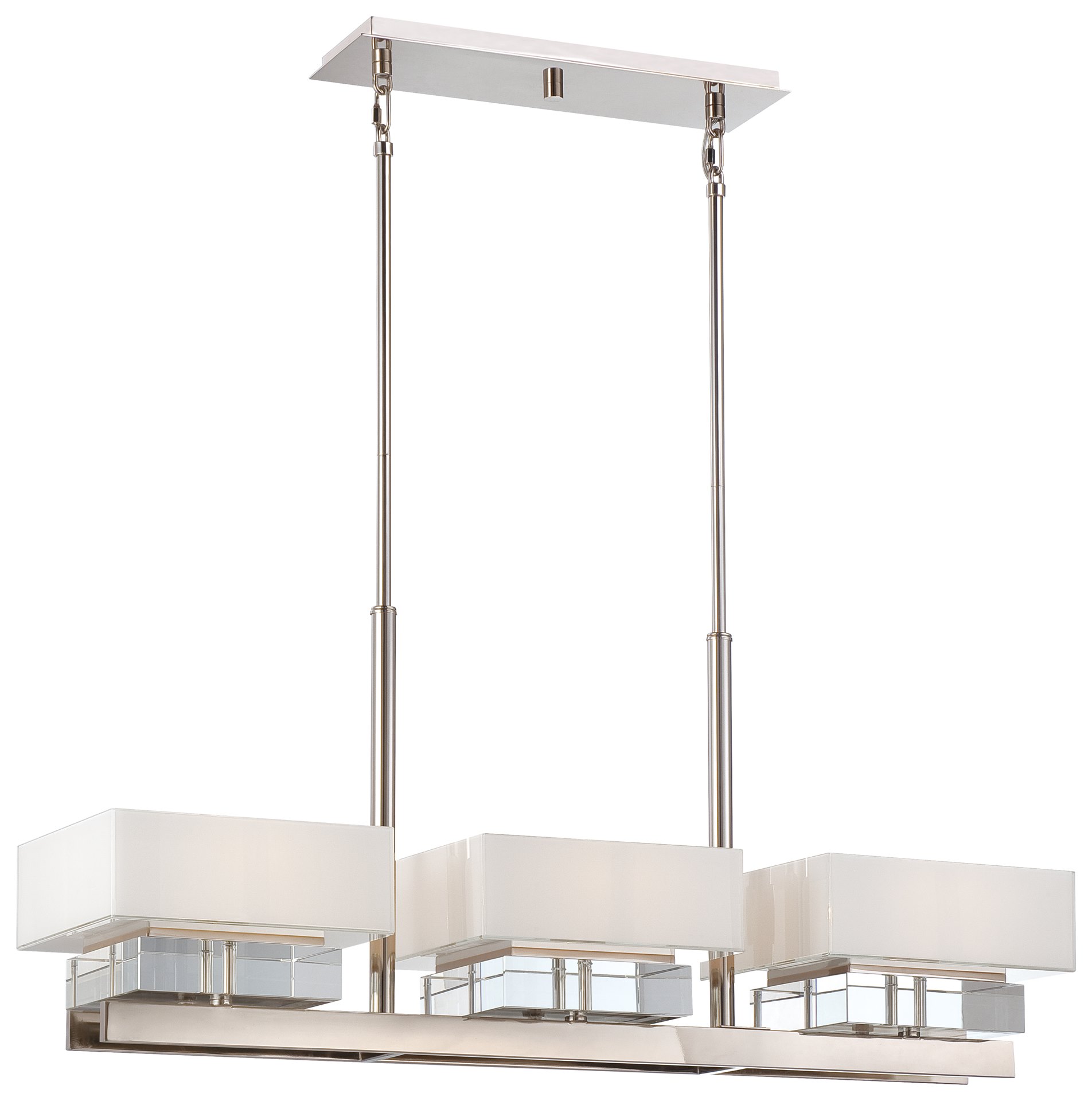 75w SW Six Light Island Light Polished Nickel Mitered White Glass